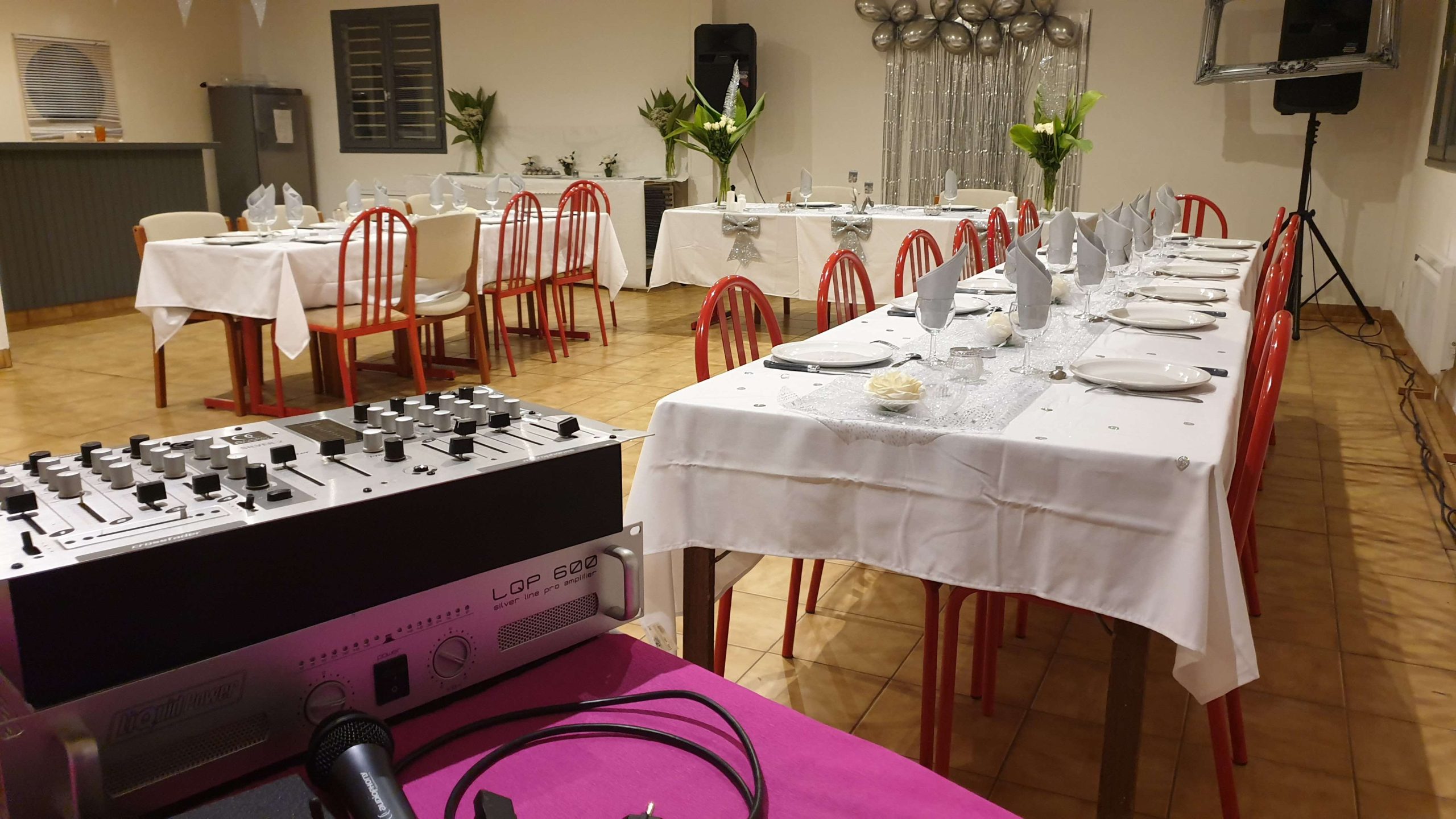 Avec deux chèques de caution un de 300€ pour le bâtiment et un de 80€ pour le ménage, poubelles sorties et rangement des tables et des chaises.
